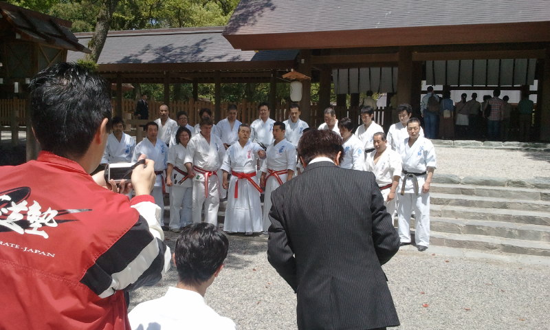 Today, a bus trip to Ise Jinga, another one of the most pre-eminent Shinto shrines. Again there was a special ritual dance ("kagura") dedicated to Kaicho and Seido karate. Just amazing. Watching it I could feel the stress of the past few weeks leaving me; such a feeling of gratitude to see something like this. I had planned to visit Ise on a previous trip to Japan, but ended up missing a train -- if I'd gone then, though. it would have been nothing like what I got to experience today.