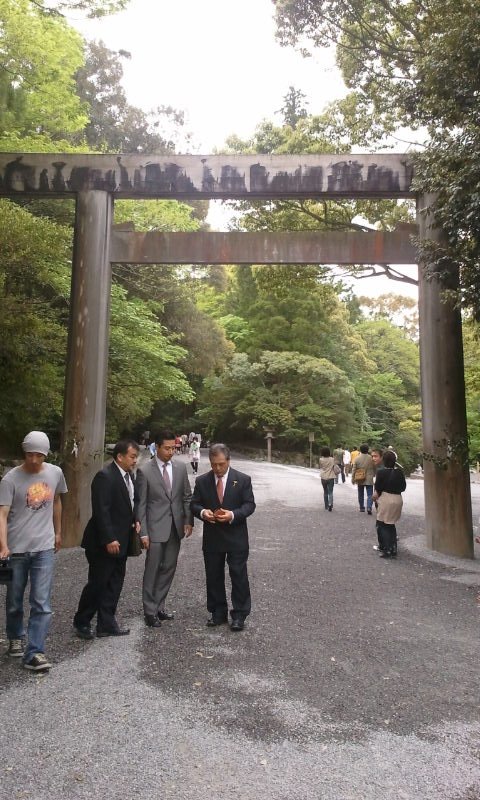 Kaicho, Nidaime, Hanshi Andy, and seniors at Atsuta Jinga