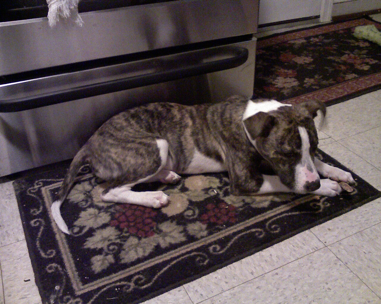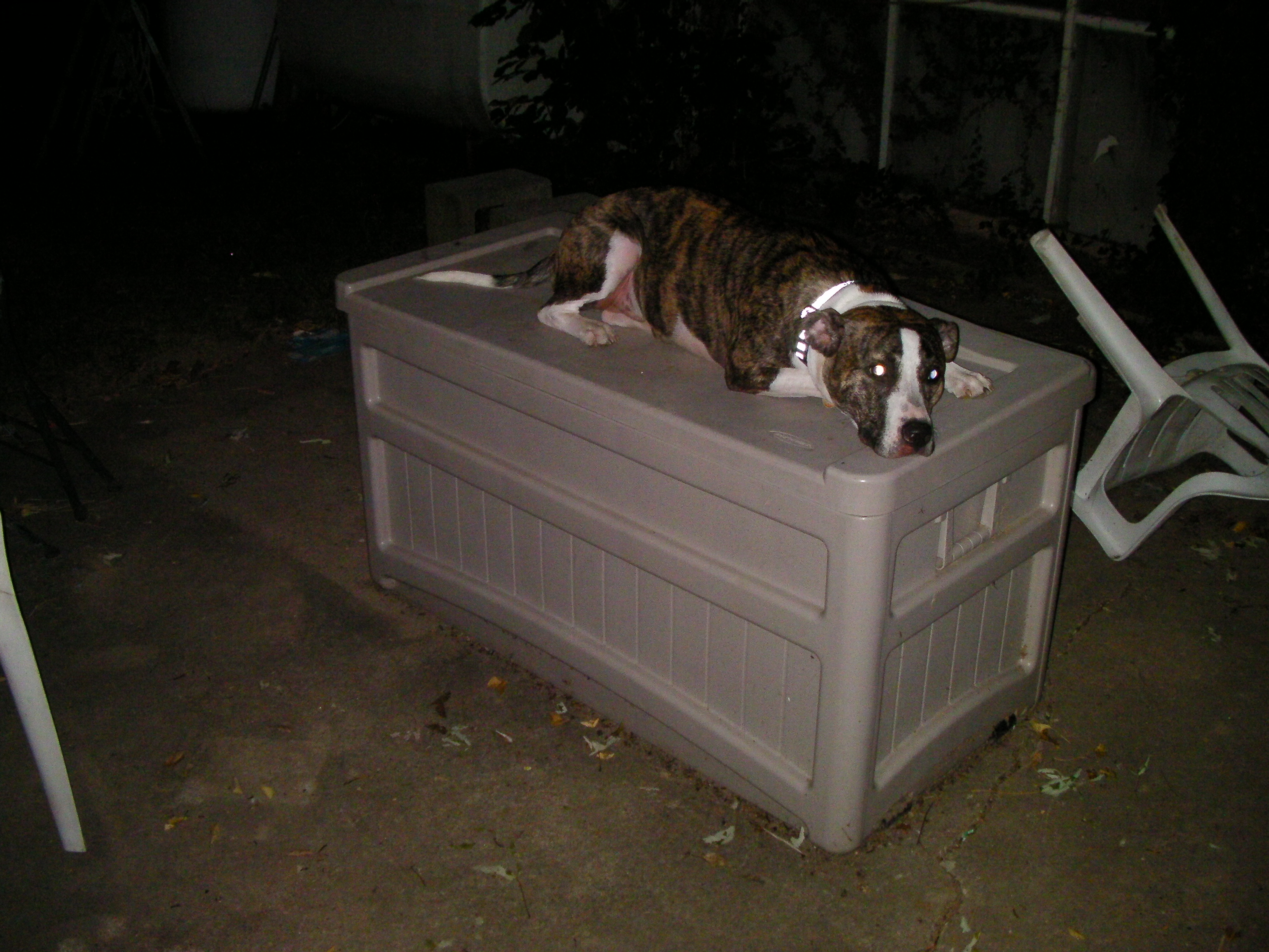 Ringo climbed up on this deck box/bench...and couldn't get back down. Silly puppy.